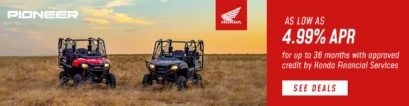 We also provide a top-notch service department capable of getting your ATV, motorcycle, or UTV back on the trail whether the fix is big or small. We work with our clients to provide affordable financing options, and many customers only need a credit check and down payment to take home their dream ride today.